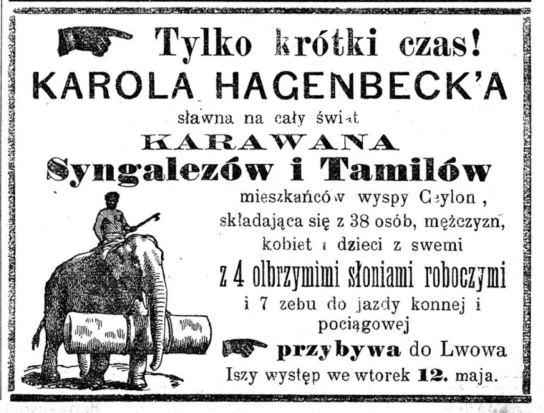 DD: To zmieniało się w czasie. Pierwszą sprowadzoną przez Hagenbecka do Europy grupą była rodzina Saamów z Laponii. Oni po prostu siedzieli i byli oglądani. To był początek. Potem zaczęły się pojawiać grupy, które coś przedstawiały. Sprowadzano np. Zulusów, w kilka lat po wojnie, którą prowadzili z Anglikami. Przedstawiano ich jako dzielnych wojowników, potomków wielkiego wodza, którzy przyjeżdżają odwiedzić Europę. Pokazy zaczęły nabierać charakteru wędrownych trup teatralnych, które miały łączyć wiedzę etnograficzną z coraz większą dawką rozrywki. Taka mieszanka okazała się popularna, tysiące ludzi przychodziły na spektakle we Wrocławiu, Poznaniu, Warszawie, Petersburgu, Pradze czy Budapeszcie.